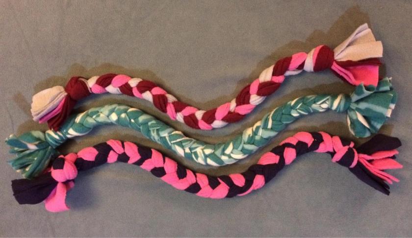 Learn how to make your own tug toys, snuffle mats, a variety of treat dispensers, homemade dog treats, and how to dog-cycle before you recycle. You will have a great time making fun, enriching toys and games for your dogs at low or no cost using items you have around the house or can buy at the dollar store. These are fun toys that your dog will have as much fun playing with as you had making.